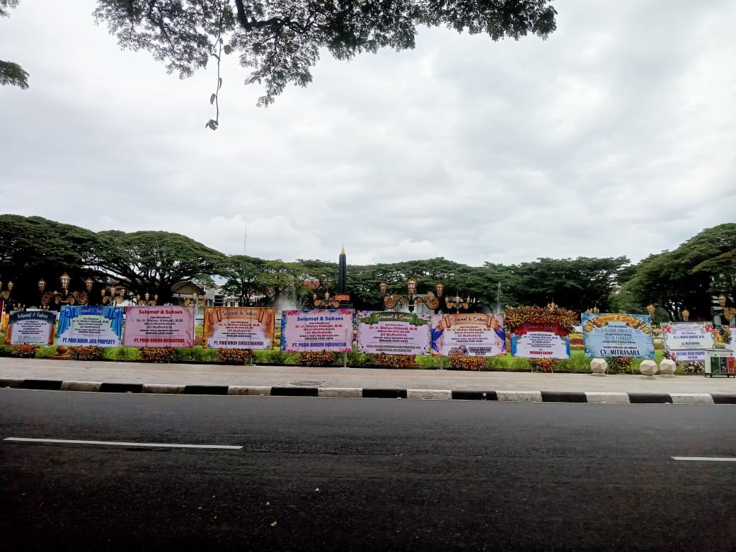 Pelantikan Wahyu-Ali, Ratusan Karangan Bunga Berjejer di Alun-Alun Tugu Kota Malang